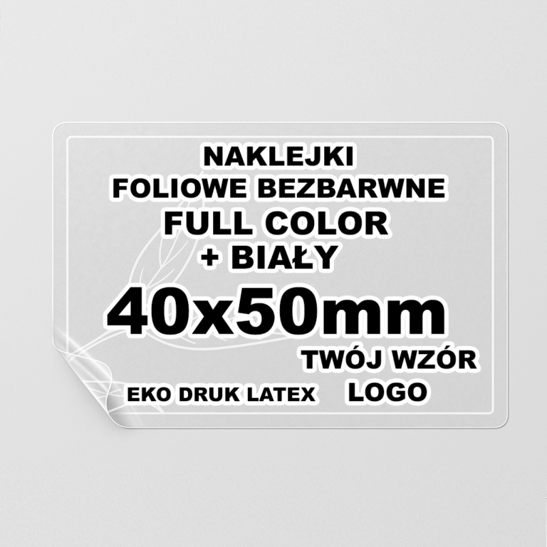 Naklejki Foliowe Bezbarwne – Druk Biały – Twój Wzór – Prostokątna 40x50mm