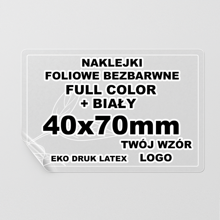 Naklejki Foliowe Bezbarwne – Druk Biały – Twój Wzór – Prostokątna 40x70mm