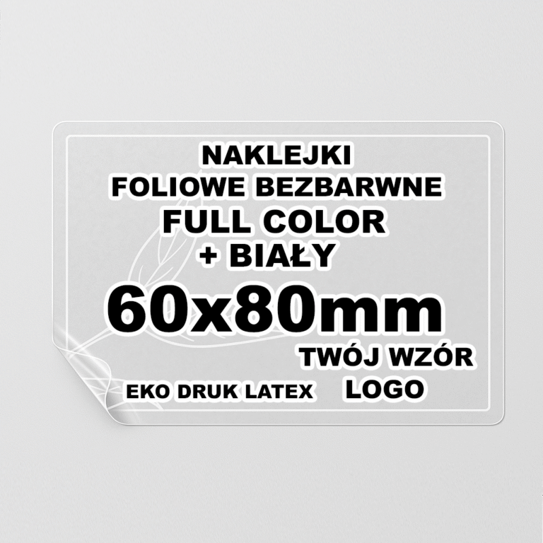 Naklejki Foliowe Bezbarwne – Druk Biały – Twój Wzór – Prostokątna 60x80mm