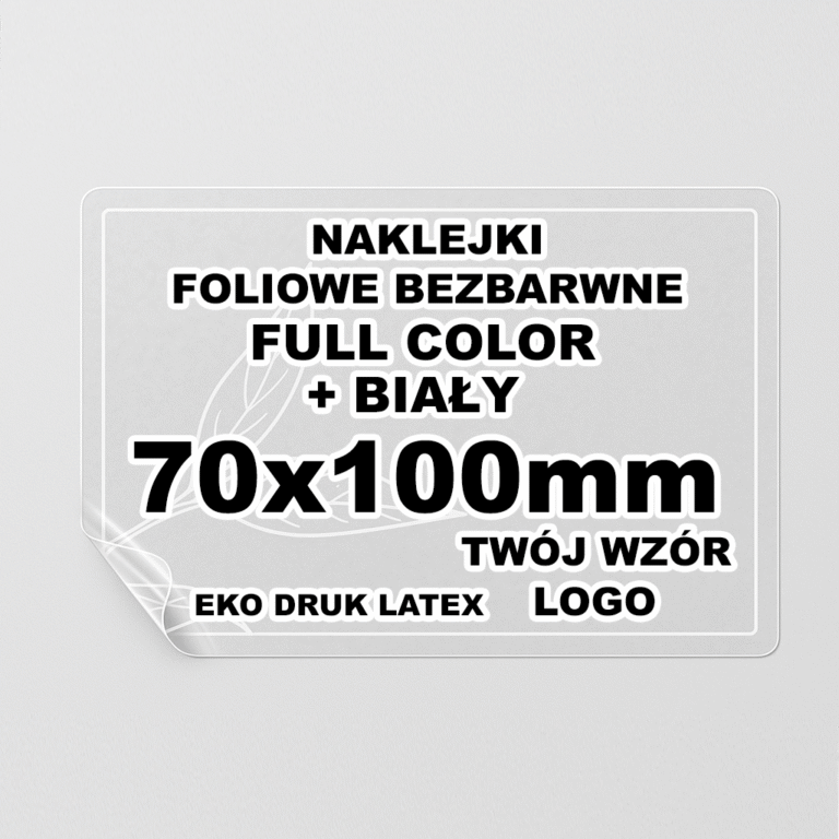 Naklejki Foliowe Bezbarwne – Druk Biały – Twój Wzór – Prostokątna 70x100mm