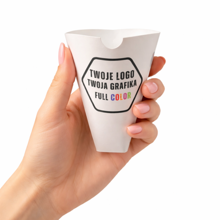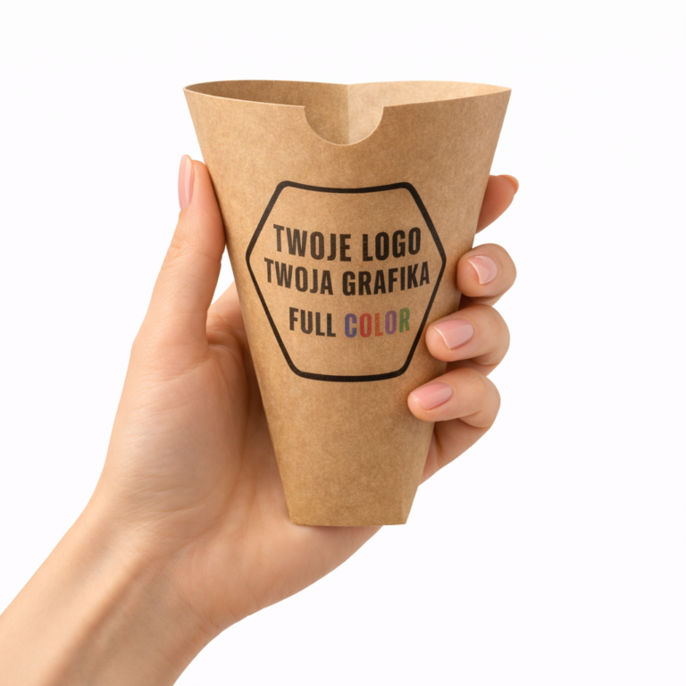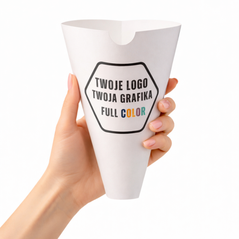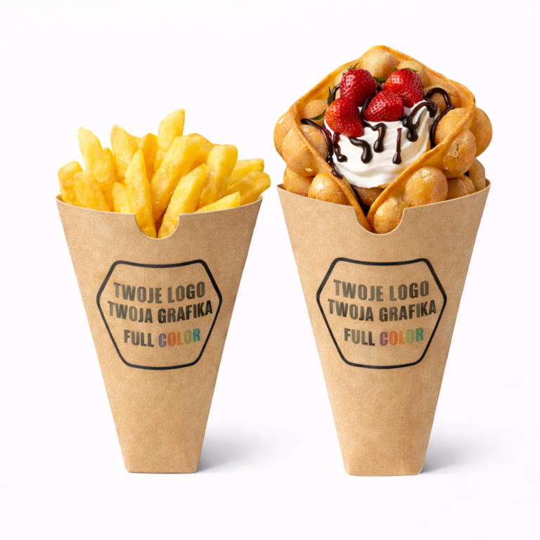 Rożek Pudełko Gastronomiczne – Frytki / Wafle – Duże – Personalizowane – Grafika – Logo – BEZ SUP!