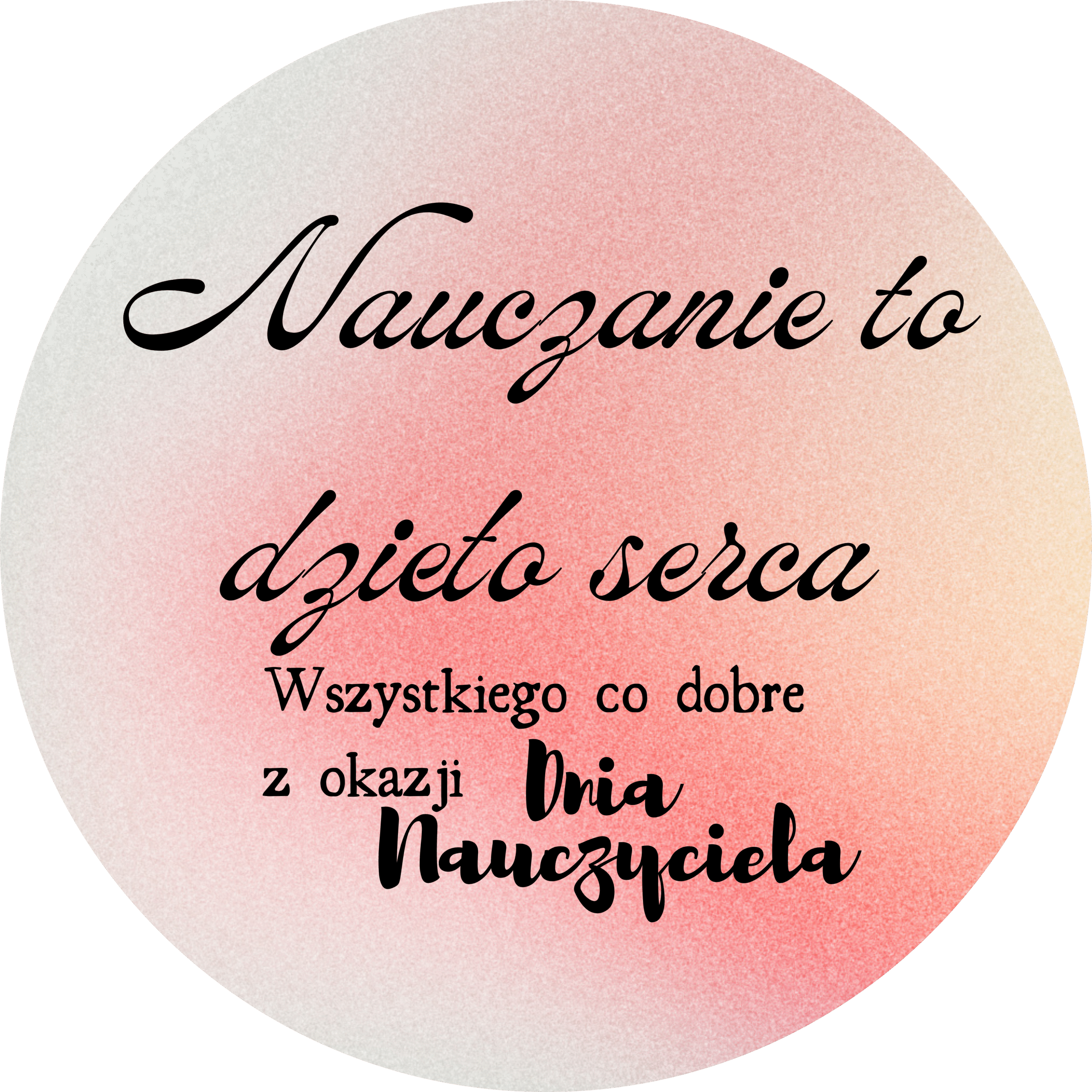 Naklejki okrągłe z napisem „Nauczanie to dzieło serca / Wszystkiego co obre z okazji Dnia Nauczyciela”