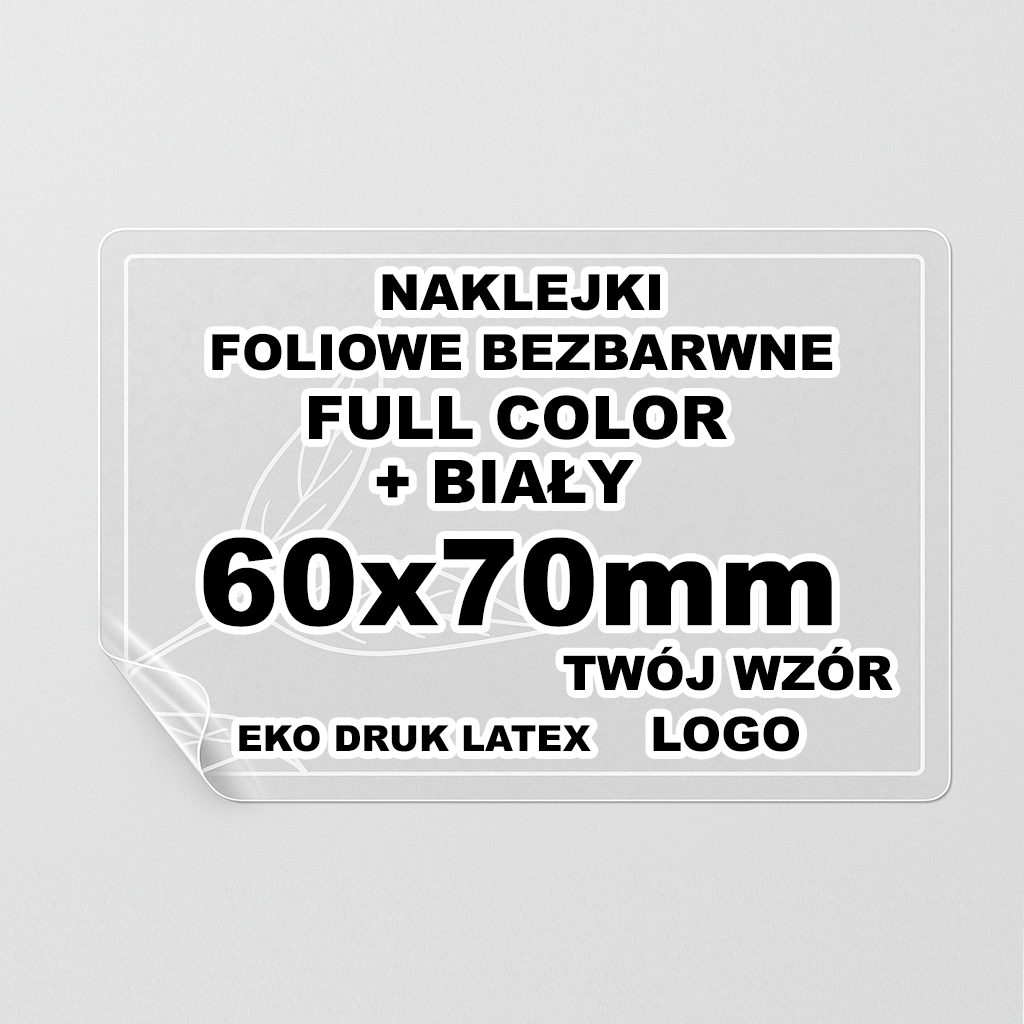 Naklejki Foliowe Bezbarwne – Druk Biały – Twój Wzór – Prostokątna 60x70mm