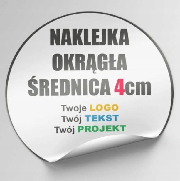 Naklejki personalizowane okrągłe o średnicy 4 cm (+/- 2 mm). Cena dotyczy kompletu 140 naklejek.